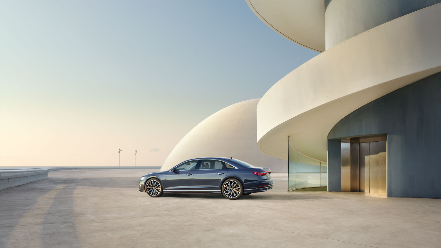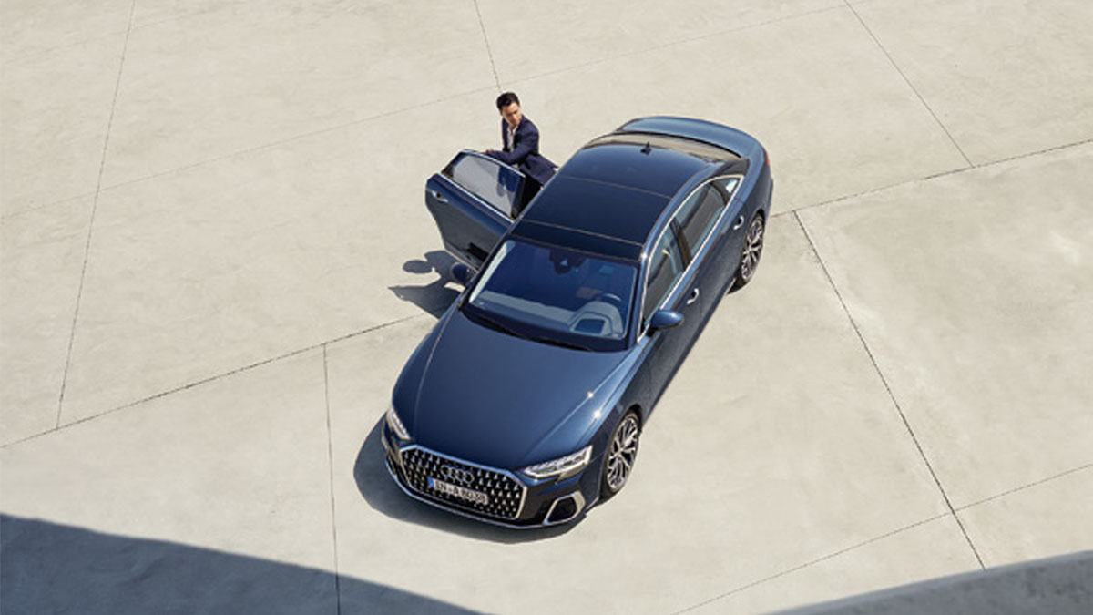 Audi A8 L mới trong màu xanh firmament ánh kim thể hiện một môi trường không gian rộng rãi hơn, đặc biệt với khoảng không trên đầu và chỗ để chân. Chiều dài 5,32 mét, Audi A8 L có trục cơ sở dài hơn cùng thiết kế cửa lớn hơn mang đến một đẳng cấp riêng.