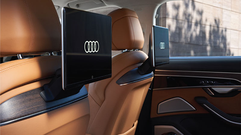 Audi A8 L mới được trang bị nội thất mở rộng chất lượng cao đặc biệt với độ thoải mái của phần ghế ngồi bọc bằng da Valcona cao cấp. Các đường viền trên ghế được thiết kế riêng biệt kết hợp chức năng thư giãn mang đến cho người ngồi phía sau một không gian lý tưởng để làm việc cũng như thư giãn trên mọi chuyến đi. Hệ thống thông tin giải trí ở hàng ghế sau cũng được đảm bảo qua hai máy tính bảng màn hình 10 inch full-HD.