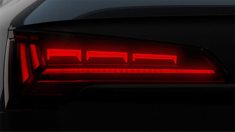 Audi Q5 được trang bị đèn pha LED ma trận, kết hợp đèn LED phía trước và phía sau cùng đèn báo rẽ năng động, hệ thống rửa đèn, khi xe vào cua đèn pha sẽ tự động điều chỉnh phạm vi của ánh sáng một cách thông minh, và đèn chiếu sáng ban ngày nổi bật.